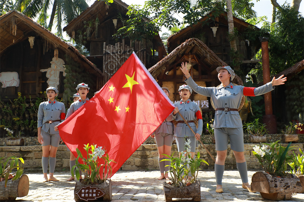 在景区甘什嘚体验区,来自保亭县响水中心学校的同学们走进古村落,探寻黎族文化的起源、体验黎族纺染织绣、原始制陶、钻木取火等黎族非遗技艺,趣味互动+科普讲解,让同学们加深了对黎族非遗文化的认知。
