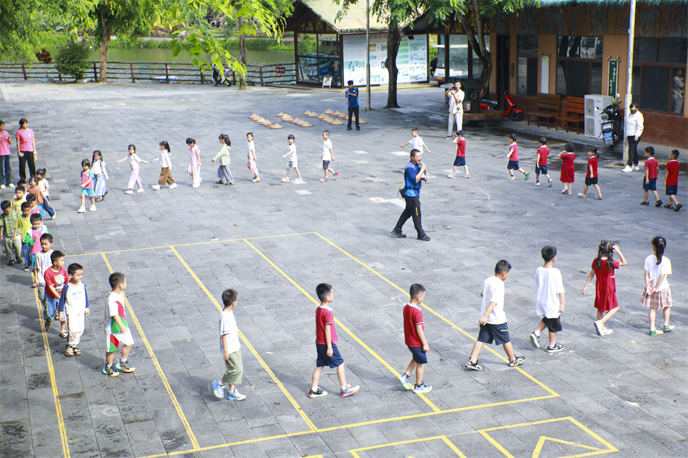 近日,三亚市吉阳区嘉乐幼儿园、海口市海景学校、保亭县响水中心学校相继组织学龄前儿童及中小学生,来到海南槟榔谷黎苗文化旅游区开展非遗研学活动。进入暑期,槟榔谷已迎来包括新加坡、美国在内的国内外2000余名中小学生开展亲子、研学、毕业主题活动,景区丰富多彩的非遗文化体验受到各大教育机构的青睐。
