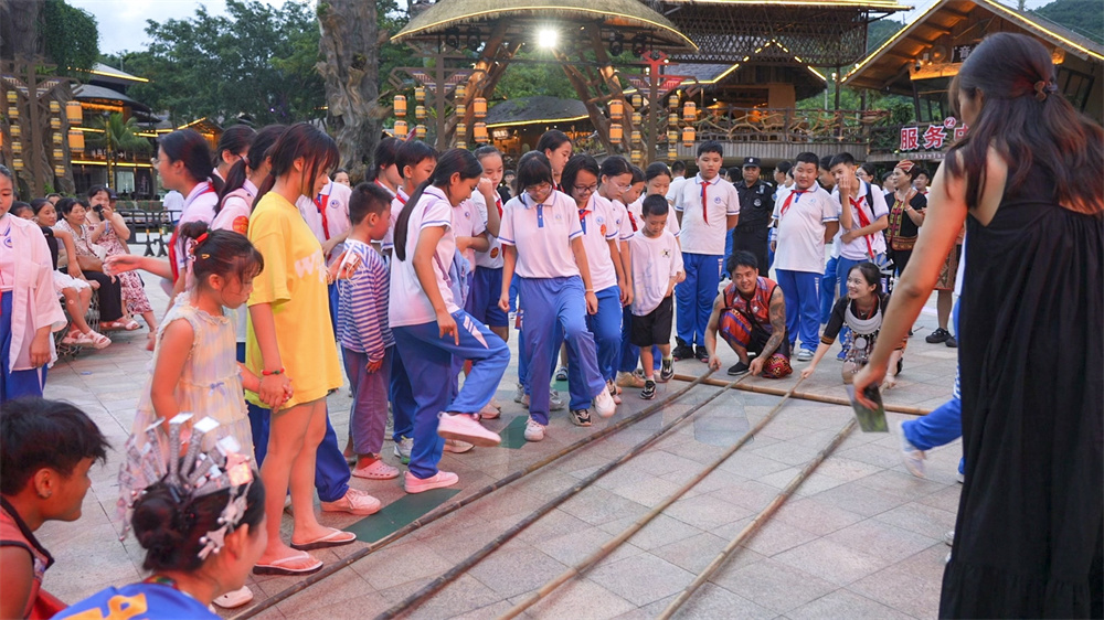 据了解,为满足不同群体暑期的个性化消费需求,槟榔谷景区以“悠黎客”拓展基地为载体、十项非遗技艺为核心、17个游乐项目为燃点,全新推出了非遗技艺、民俗竞技、神话传说、歌舞剧、乡村音乐、人偶剧等40余个演艺节目,不断涌现的新产品、新业态让暑期市场热起来,消费火起来,丰富了人们的旅行体验。