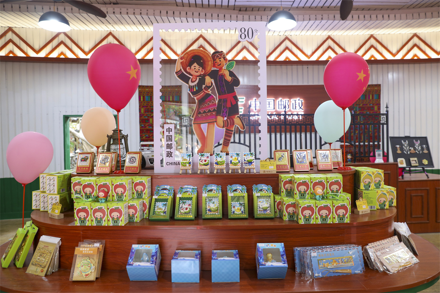 以黎族船型屋造型打造的黎苗文化主题邮局,在暖冬的阳光下格外醒目。邮局空间设有邮政服务、非遗展示、互动体验、主题销售等功能区域。在邮局里,可以看到年代久远的老邮车、老邮箱、老粮票、缝纫机、手摇电话机、“大哥大”,也能体验到以“旅邮”主题非遗文创产品;“老记忆”+“新”的邮局能唤醒人们的集体记忆,也能在每一枚邮票、每一方邮戳、每一张明信片、每一件文创产品中,铭记黎族织锦、船型屋、笔箫、三月三等非遗文化符号,通过“邮政”这一世界共用的语言,让黎苗文化跨越山海,走进千家万户。
