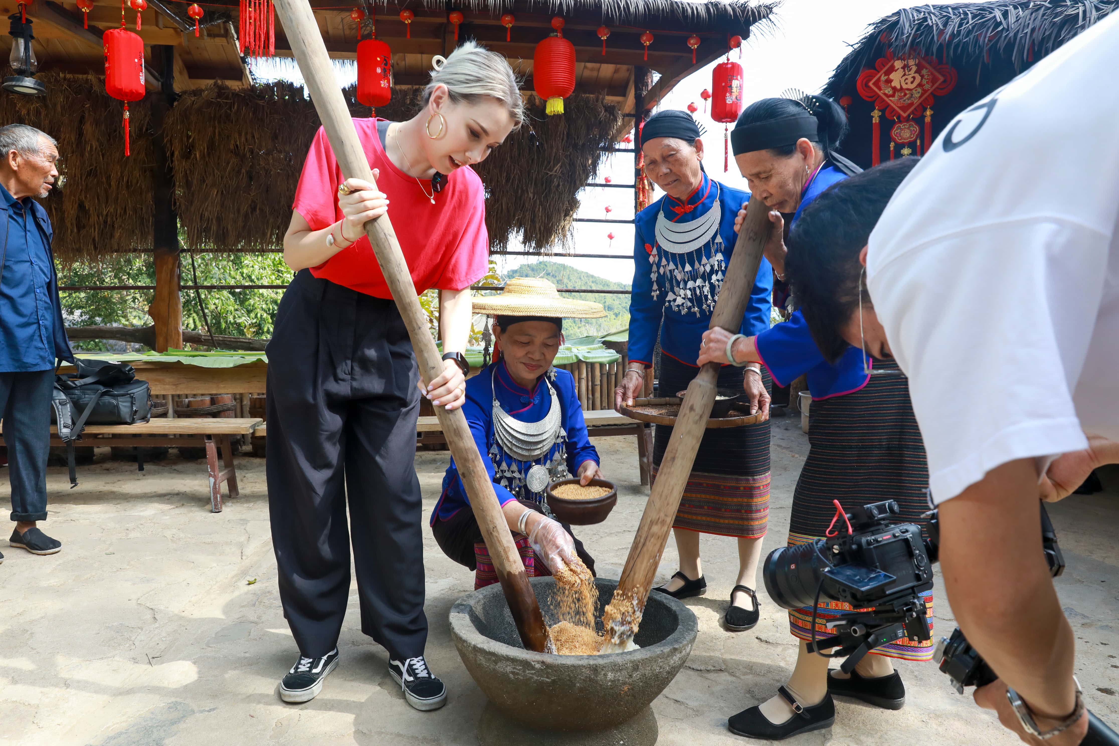 为向全球推介海南特色文旅资源,讲好海南文化故事,近日,新华社邀请外籍网红博主Tina来到海南槟榔谷黎苗文化旅游区,体验海南黎族新年。