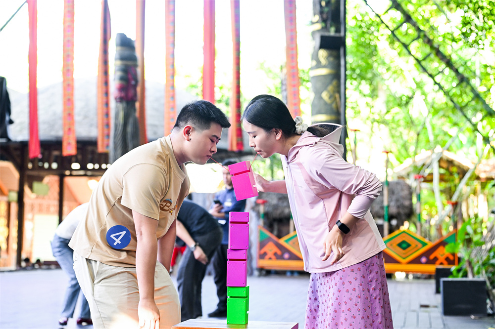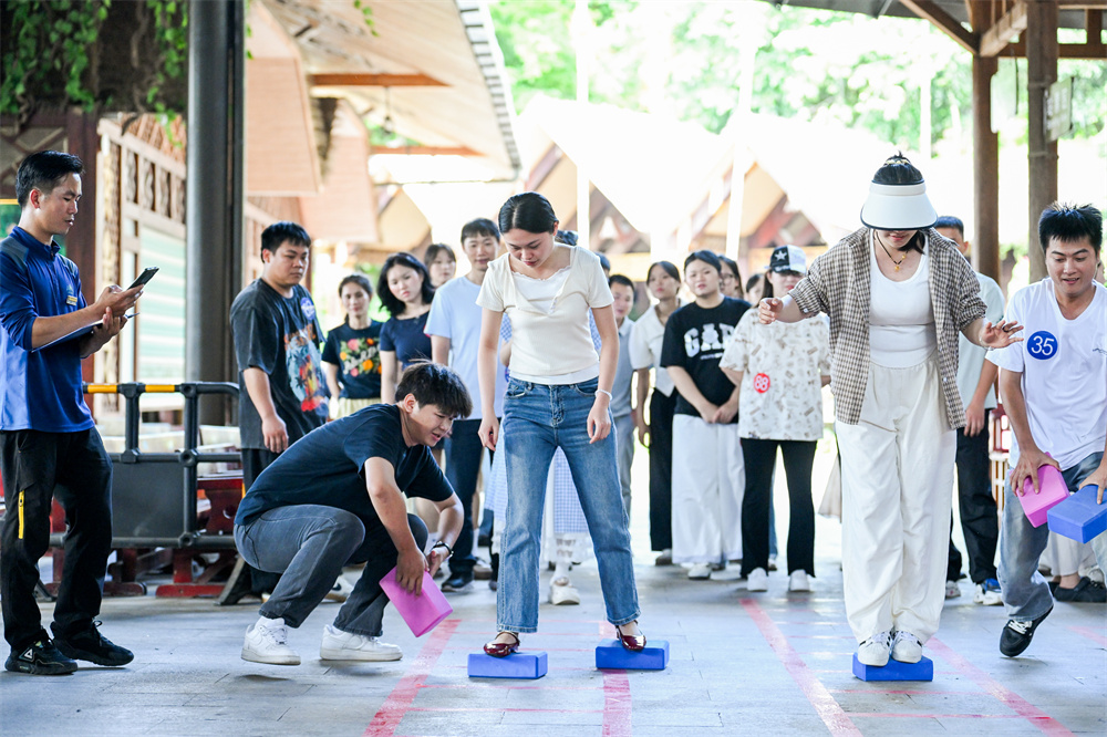 在景区教练团队的组织下,嘉宾们先后体验了破冰团建、摸石过河、爱情阶梯跳、爱情高塔等丰富有趣的互动游戏。在愉悦的气氛中,男女青年多了一分默契,拉近了彼此的距离。