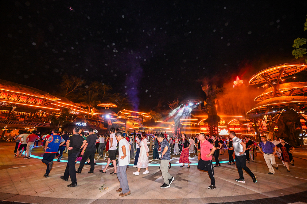 入夜,波隆广场霓虹璀璨、激情四溢。嘉宾们与游客一道,在精彩纷呈的歌舞表演中,共享篝火狂欢。在心动表白环节,配对成功的男女青年走上舞台,分享活动的喜悦之情。主办方为大家颁发活动奖品,为这个浪漫的日子留下美好的纪念。