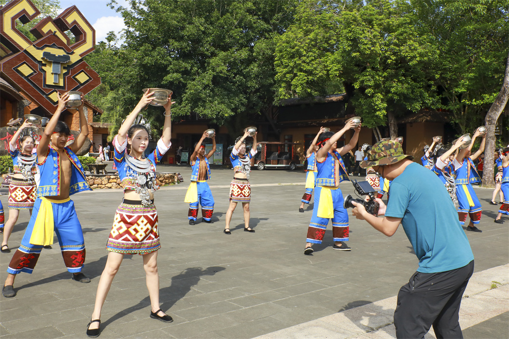 据了解,南岛语是世界上最为广泛分布且主要在海岛上使用的语言系统,使用南岛语的人群被统称为南岛语族。今天,南岛语包含超过1200种语系,使用人口约4亿人,其独特性在全球语言版图中占据了一席之地。长久以来,“南岛语族的起源与扩散”作为环南中国海及南太平洋地区的研究热点,吸引了考古学、人类学及语言学等多领域学者的广泛关注。其中,槟榔谷景区作为海南民族文化的“栖息地”,是此次拍摄的重要一环。