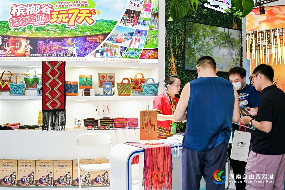 此次展会,槟榔谷景区为与会嘉宾展示代表海南民族文化精髓的手工黎锦、手工饰品、非遗文创包包及谷银精品,独特的海南“非遗印记”成为展会上亮眼的“文化元素”,深受广大市民和采购商的喜爱。